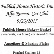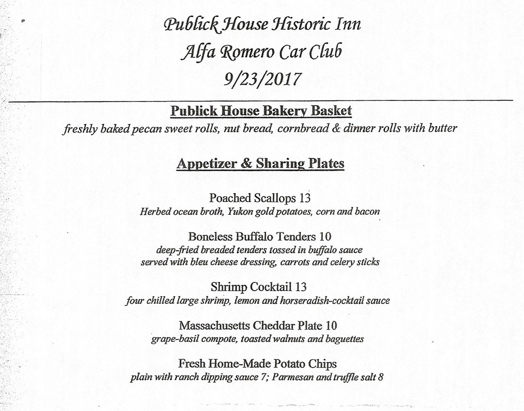 The restaurant at the end of an AONE motor tour made special menus for us — a nice touch. But here's the top of the first page.